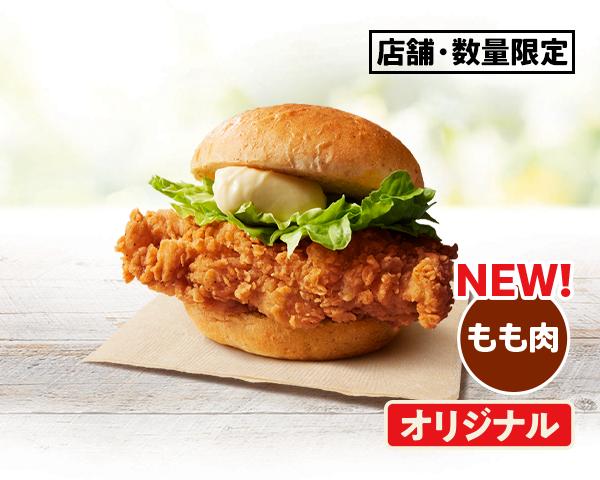 ジューシーなもも肉に、サクサク衣の食べごたえ満点!KFC自慢の、オリジナルチキンバーガーです。