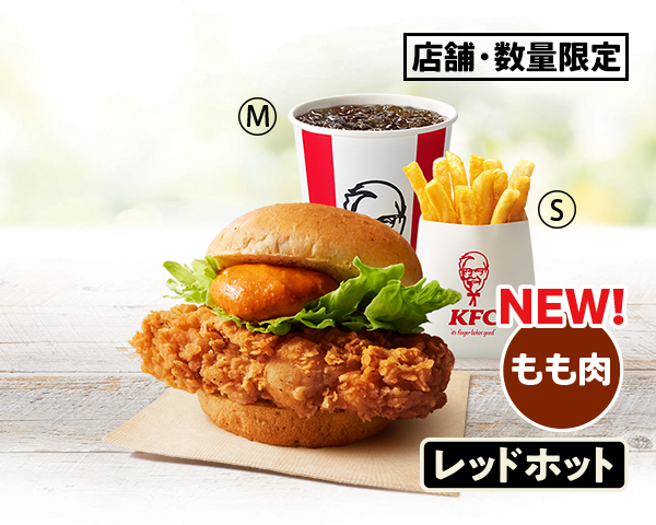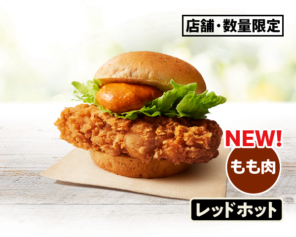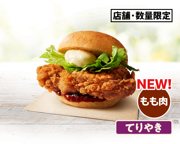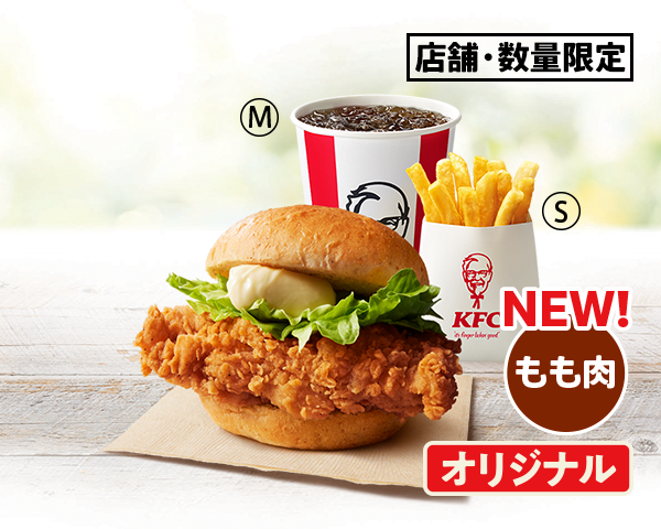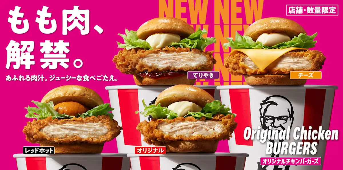 KFCのバーガーがもも肉に進化。噛んだ瞬間、ジューシーさと食べ応えたっぷりの新バーガーをお試しください。