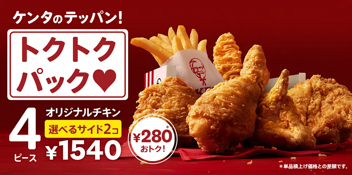 KFC自慢の「オリジナルチキン」にお好きなサイドメ二ューを組み合わせて、いつでもおトクにご購入いただけるケンタのテッパン!