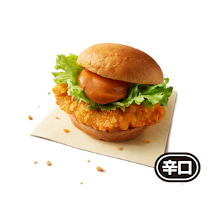 チキンフィレバーガーに特製の辛口マヨを使用した、辛いもの好きのための定番バーガー。