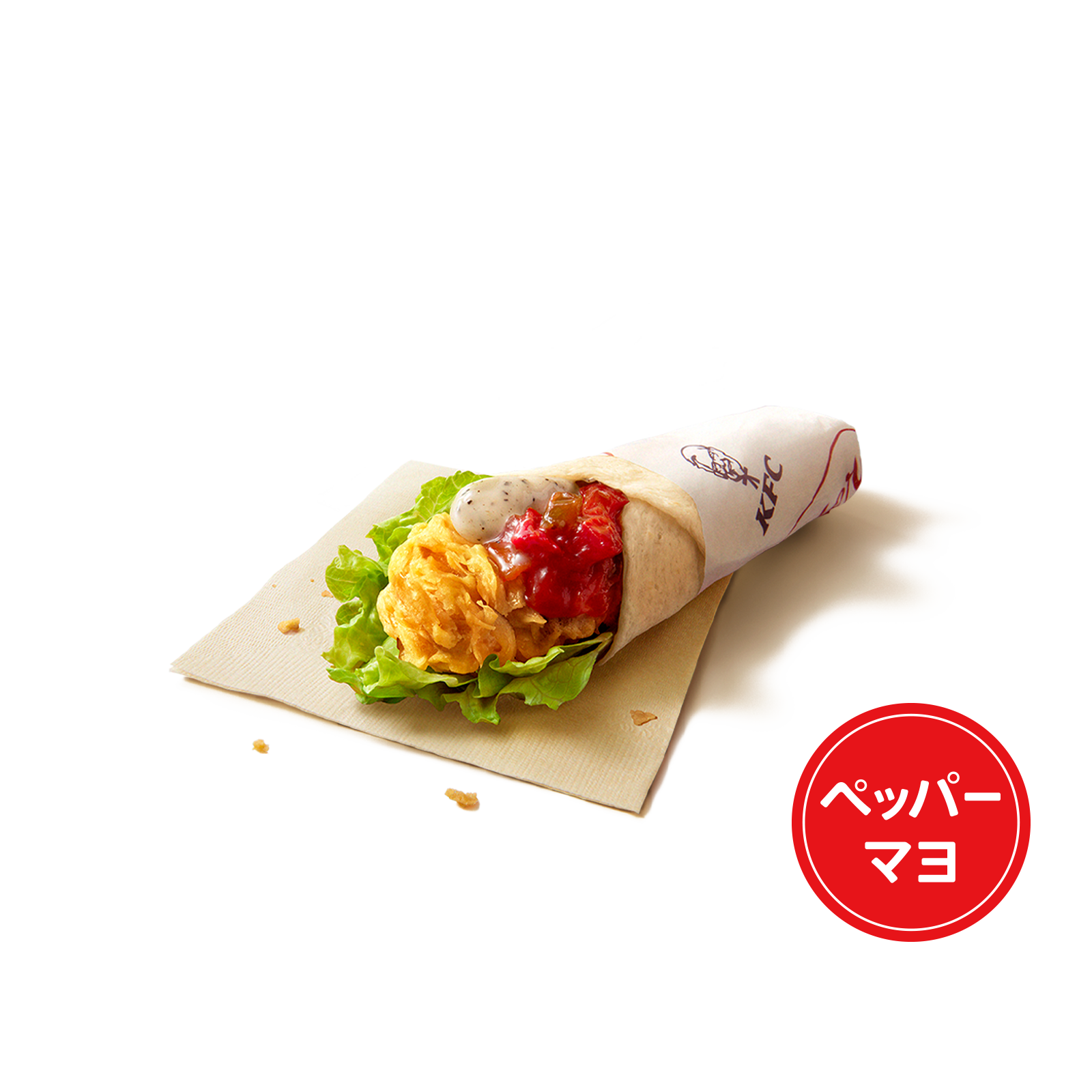 カーネルクリスピーと野菜、トマトベースのピリ辛ピカンテサルサ、ペッパー風味のマヨをトルティーヤでくるみました。