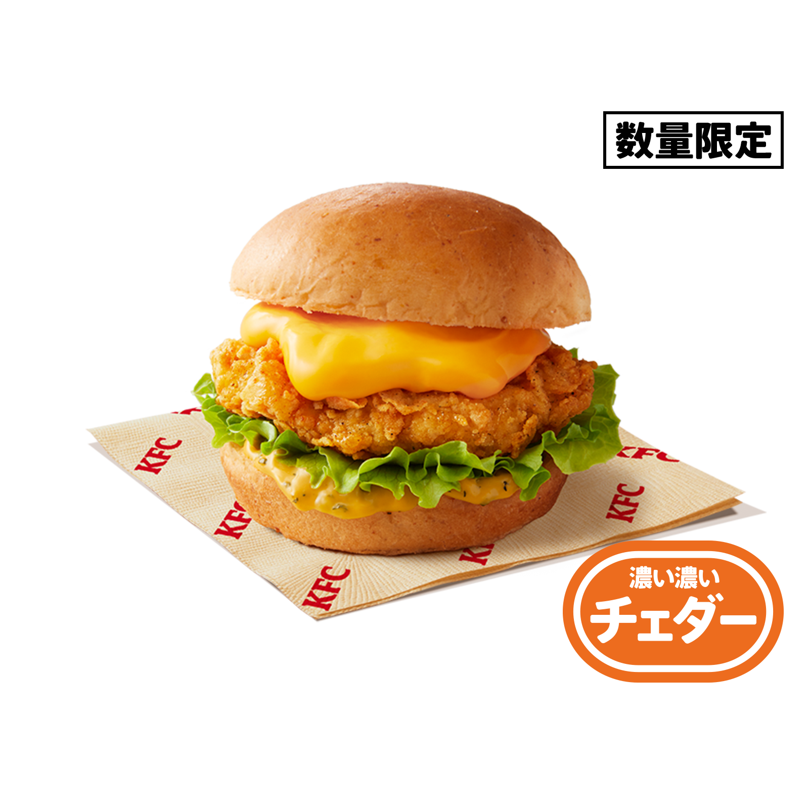 【数量限定】5種のチーズ(チェダーチーズ、クリームチーズ、ゴーダチーズ、エメンタールチーズ、パルメザンチーズ)を使用したソースと、黒胡椒を効かせたブラックペッパーチーズソースで、 濃厚なチーズをたっぷり堪能できるバーガーです